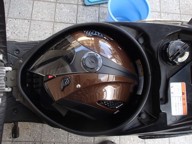 届いて早速V125のメットインに入れてみると、かなり位置決めは必要ですがなんとか入りました。