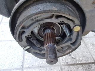 マフラーを外して、アクスルナットを外しホイルを取りました。